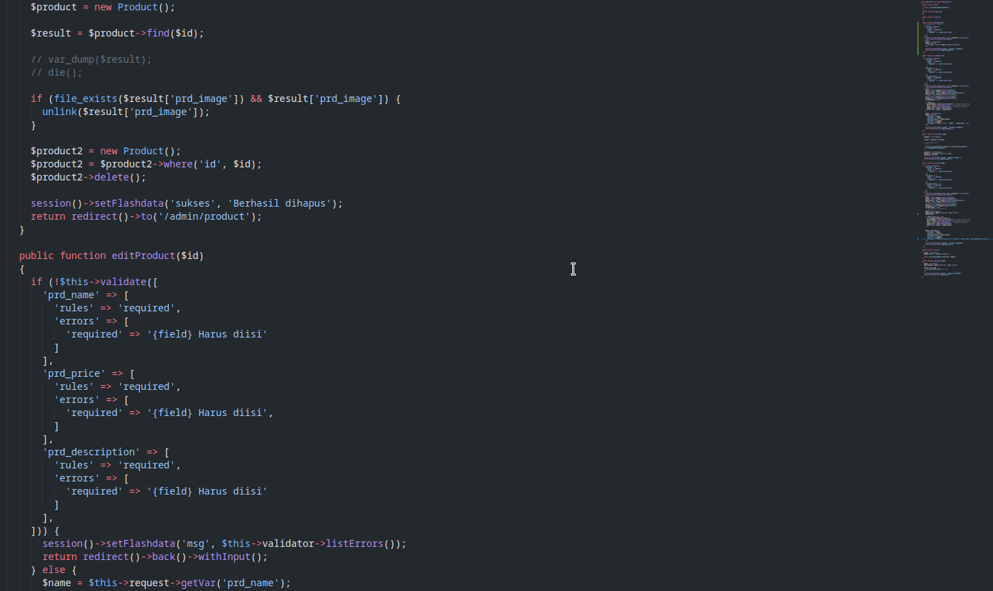 berikut isi controller admincontroller (untuk query produk ada didalam controller ini)